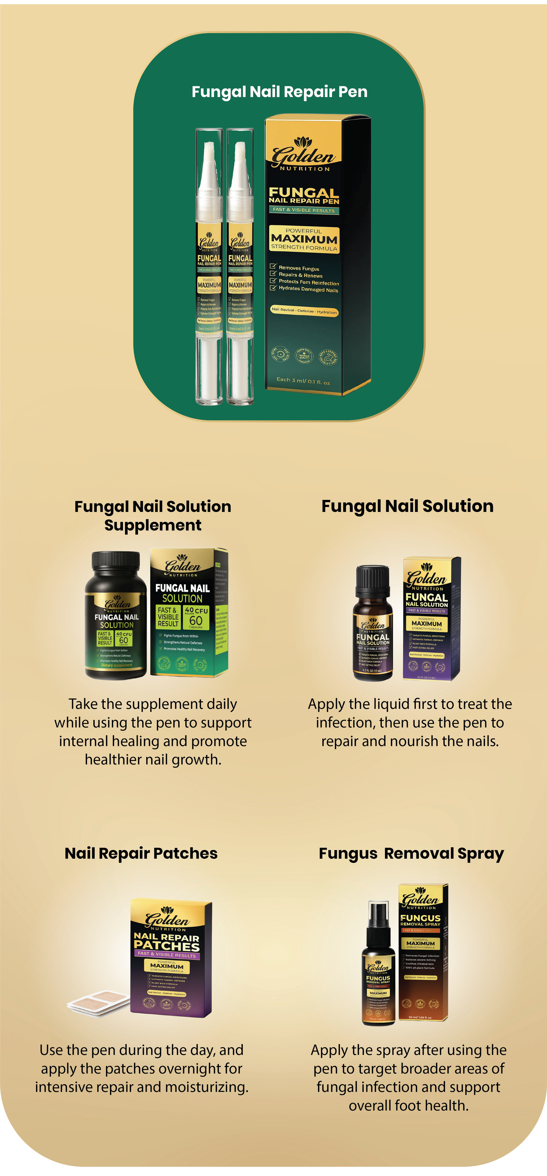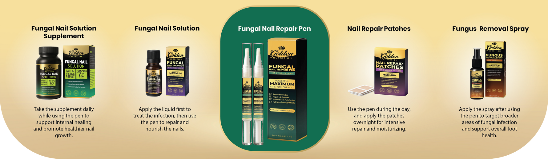 Golden Nutrition’s fungus treatment is a fast, easy-to-use way to address nail fungus at home. Our formula uses ingredients selected for their antifungal and nail-support benefits and is crafted in a quality-controlled facility. It’s designed to penetrate the nail surface, reduce visible signs of fungal infection, and support the look of clearer, stronger nails with consistent use.