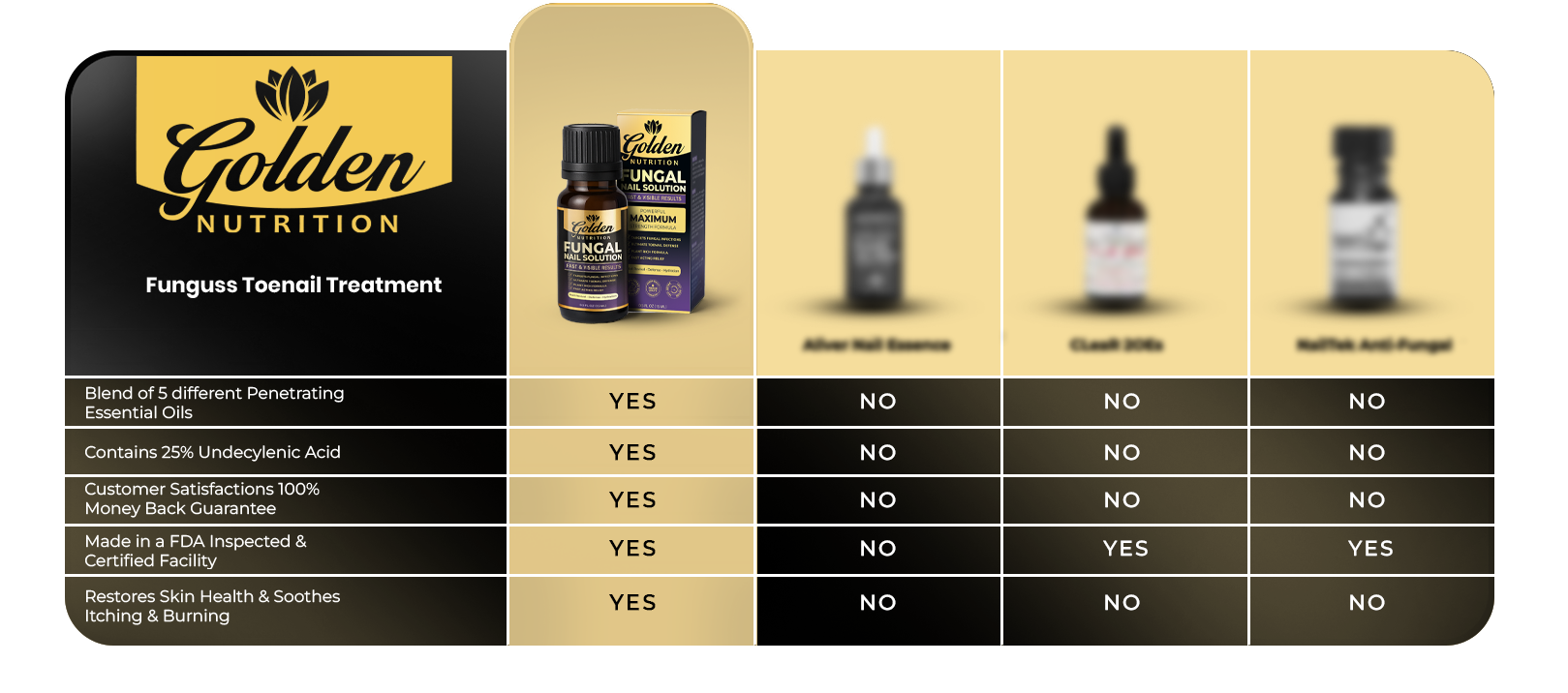Compare Golden Nutrition solutions by strength, convenience, and coverage.
