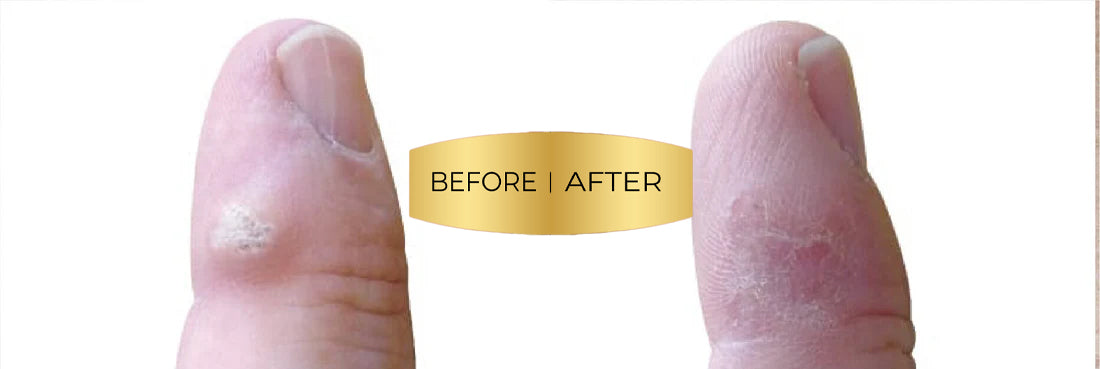 Clean the Wart, Corns, or Calluses thoroughly with soap and water, ensuring the skin is dry before application.