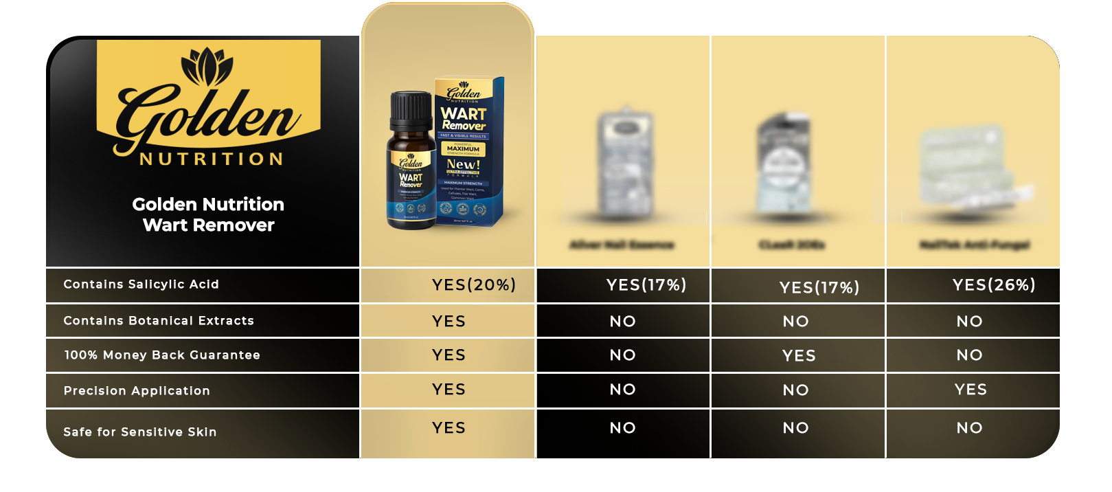 Golden Nutrition Wart Remover is scientifically formulated to eliminate warts quickly. Golden Nutrition Wart Remover is designed to get results more effectively than any other treatment available.