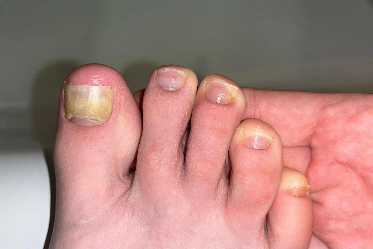 Clean the affected area thoroughly with soap and water, ensuring the skin is dry before application. If necessary, trim and file nails to remove any excess or infected nail material.